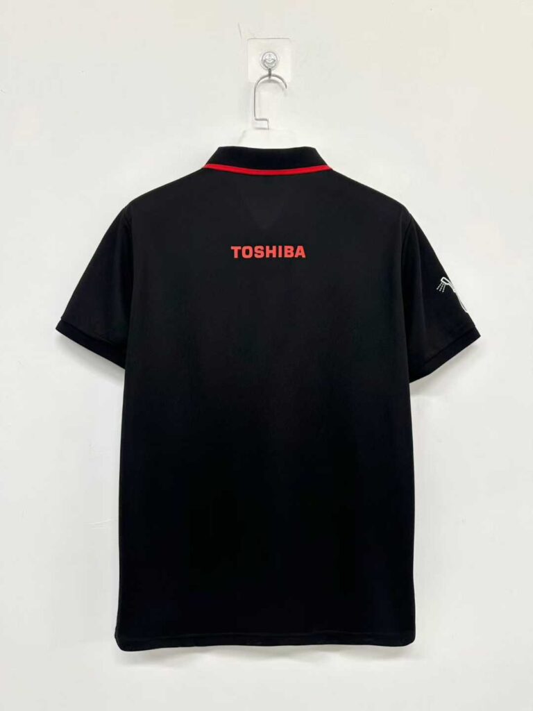 The uniform adopts a classic black base with red contrast piping on the collar, delivering: