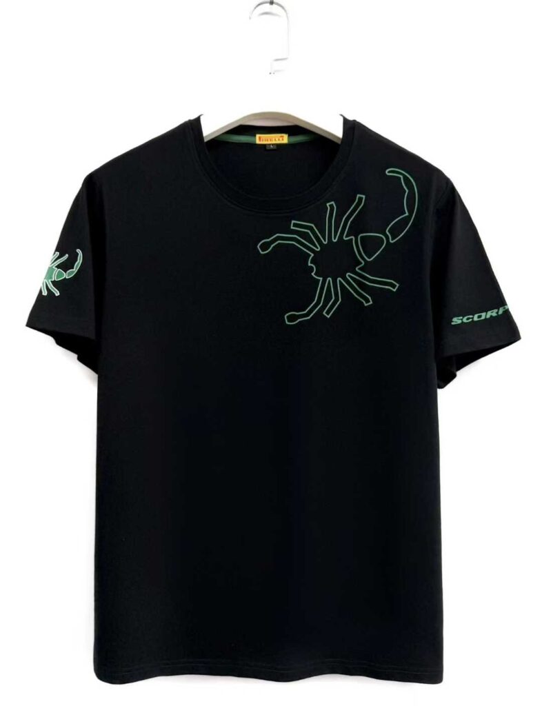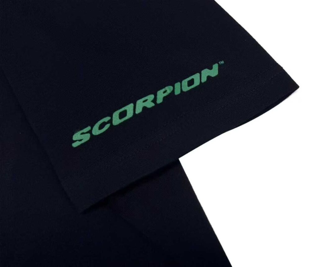 - Graphic Elements: Subtle scorpion outline graphics on chest and sleeve