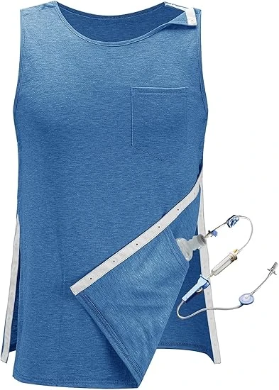 - Allows healthcare providers to access ports, incisions, and medical devices without removing the garment
